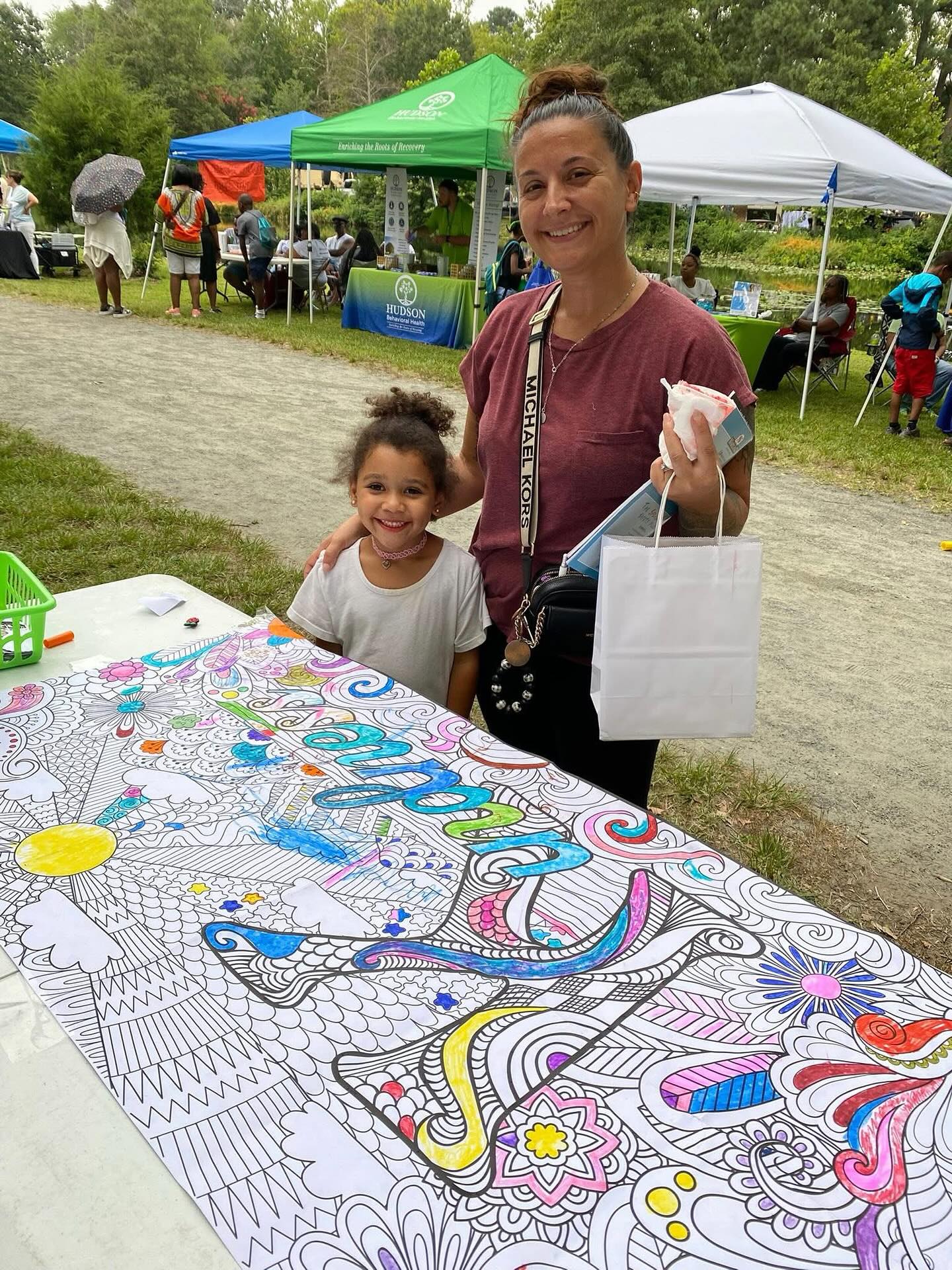 Our interactive kindness banner quickly filled with colorful drawings as neighbors of all ages stopped by. Watching families work together to add their unique touch reminded us why this work matters – kindness truly is a collaborative effort.