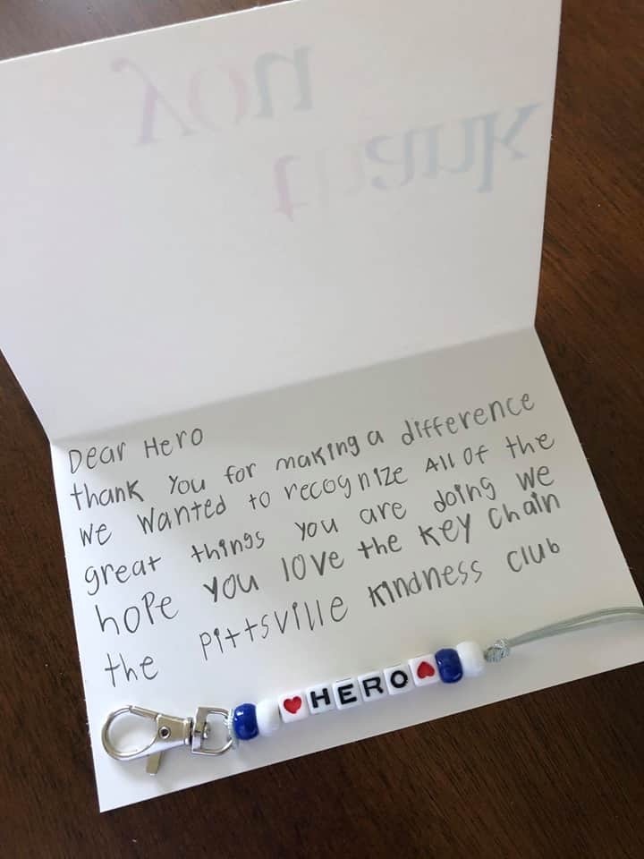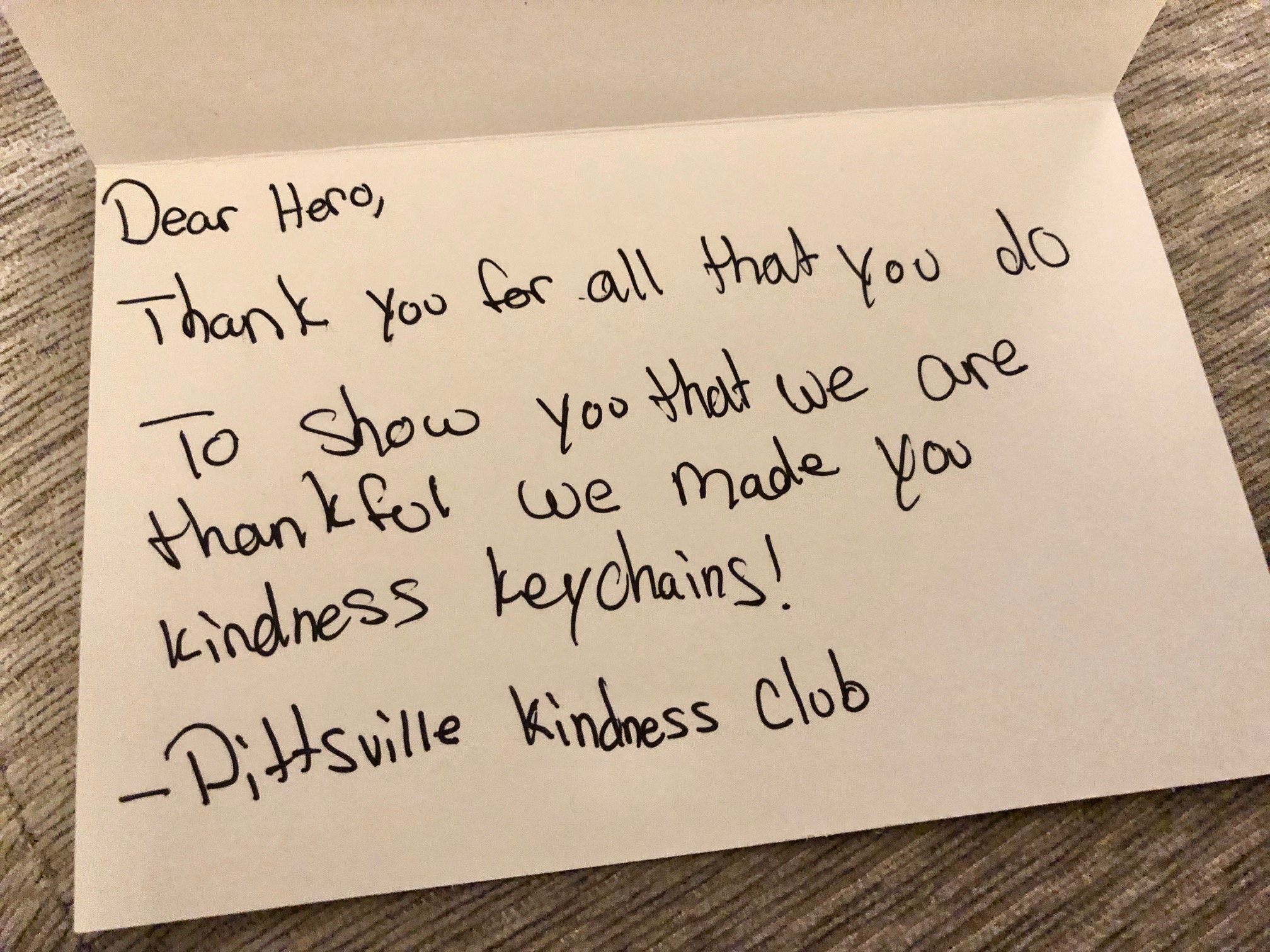 Eight members of the Pittsville Kindness Club have been busy making kindness key-chains to bless COVID first responders over the past 3 months. In June, they made a donation of 150 kindness key-chains to Mercy Hospital in Baltimore, MD and in July they made a donation of 150 kindness key-chains to PRMC hospital in Salisbury, MD. Way to go PEMS kindness club. You are a true example of kindness in action! Thank you for being an inspiration.