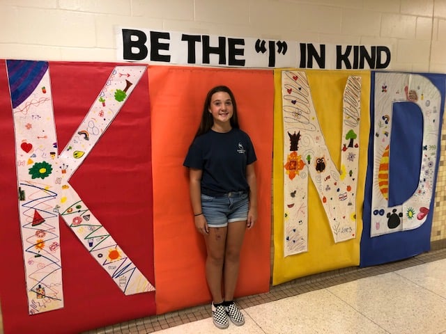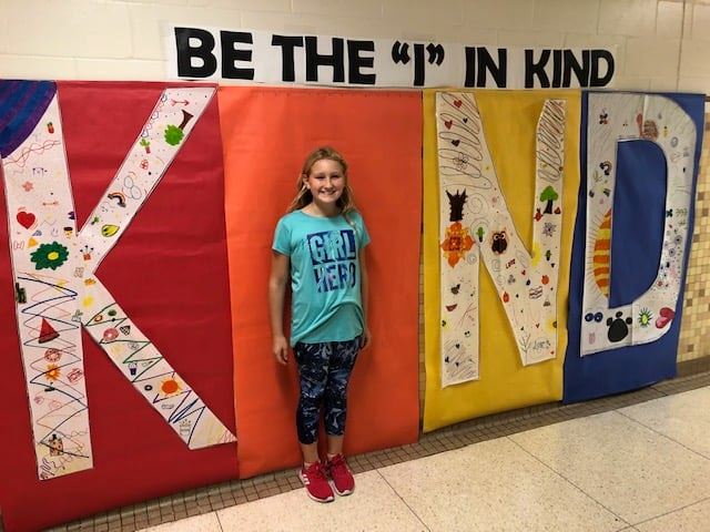 Pittsville Elementary and Middle School‘s Kindness club created a”Be the ‘I’ in Kind” wall mural where students are able to take the pledge and show their commitment to showing kindness towards others.