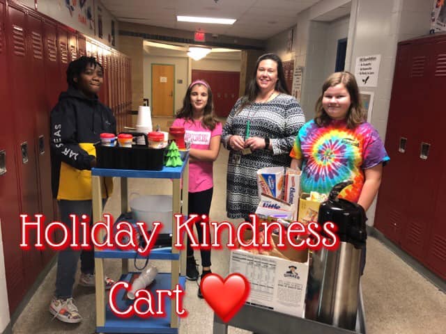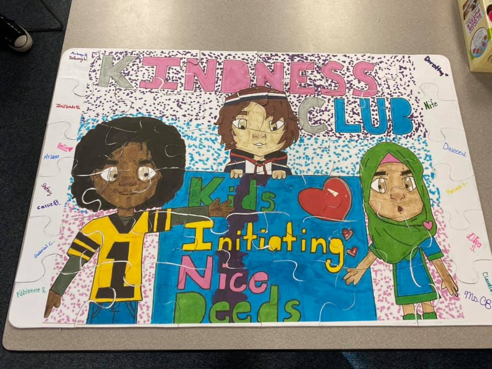 Salisbury Middle recently launched their 1st Kindness Club and is off and running…The students invited Mayor Jake Day to speak at one of their meetings about kindness. At the meeting they made kindness clips and presented their kindness puzzle. Some of the activities they’ve been doing this year are: a Holiday Kindness Cart for staff, that was filled with treats and hot beverages and they created a “Kindness gives us eagle wings” mural filled with every staff and student name where students can have their photo taken.
