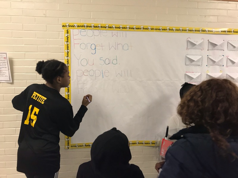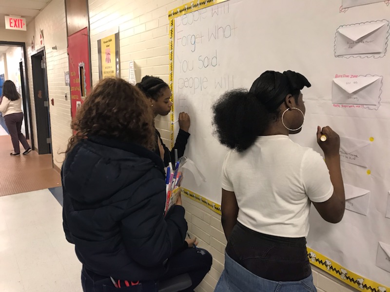 At Wicomico Middle School, Mrs. Torres’ students tied in Kindness activities to their theme of overcoming obstacles. The class started by discussing Cyber-bullying and how they can spread kindness to prevent this and other types of bullying. The students created a Kindness Station/Kindness Box and a Kindness Board.