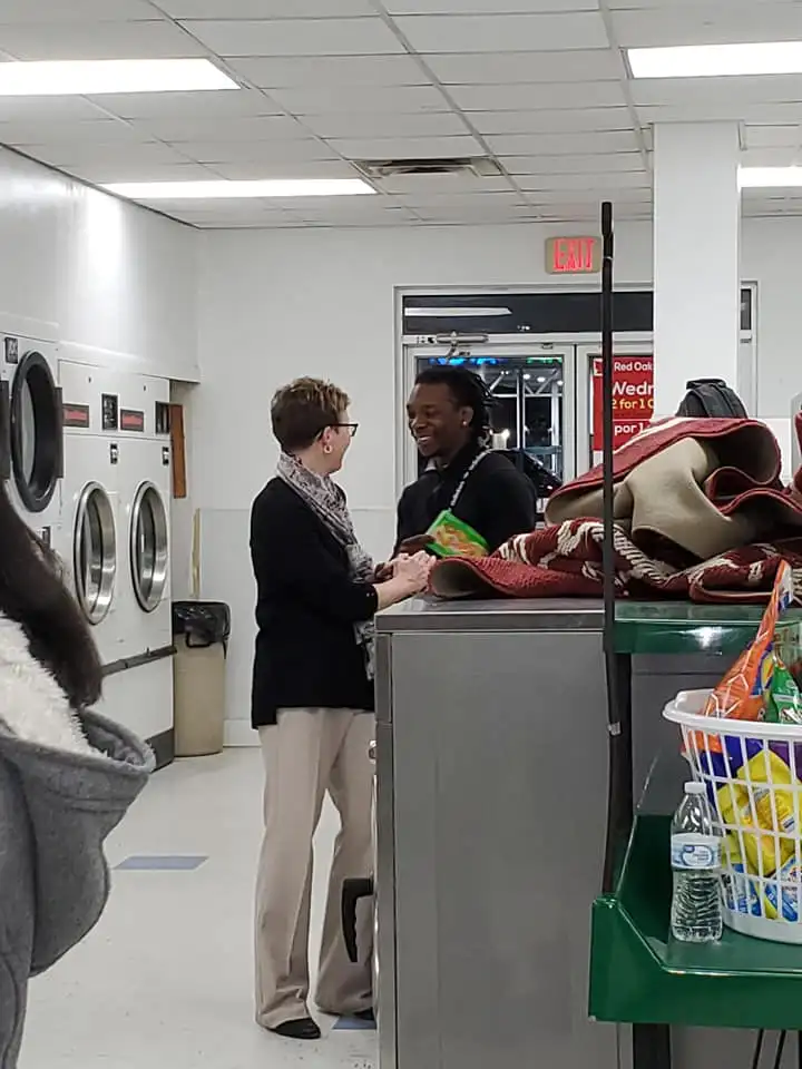 Emmanuel Wesleyan Church ladies ministry was busy spreading love at the Laundromat during Random Acts of Kindness week. They helped fold laundry and give out quarters for laundry. What a blessing!